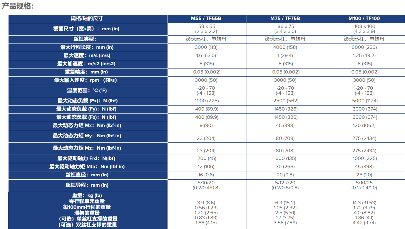 Thomson MG/TG (Movopart/Rapidtrak) 直线单元产品特性如下: