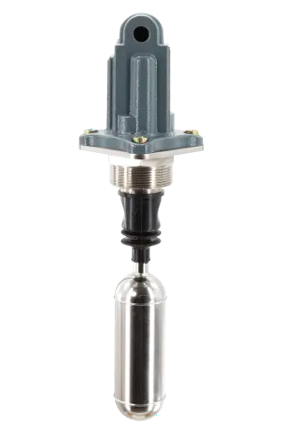 浮球液位开关。利用浮力原理。浮子的运动被传递到一个磁铁上,该磁铁切换一个信号微动开关。浮子和外壳由一个密封的不锈钢屏障隔开。操作时不需要电源。